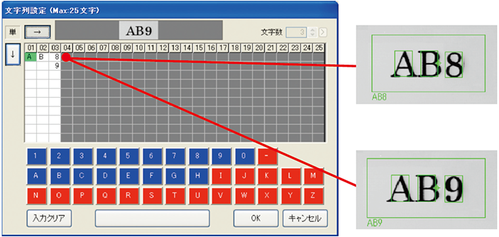 把文字作为式样来登记并进行检查。用得分检查文字品质的【模式检查】,针对文字部分的【文字部检查】,针对文字背景部分的【背景缺陷检查】,【文字偏移检查】等,拥有丰富的文字检查项目。